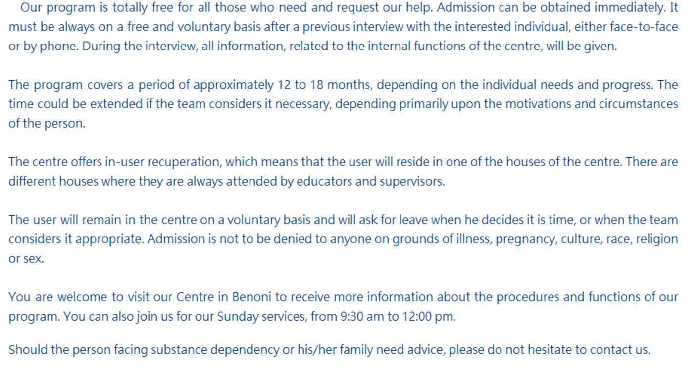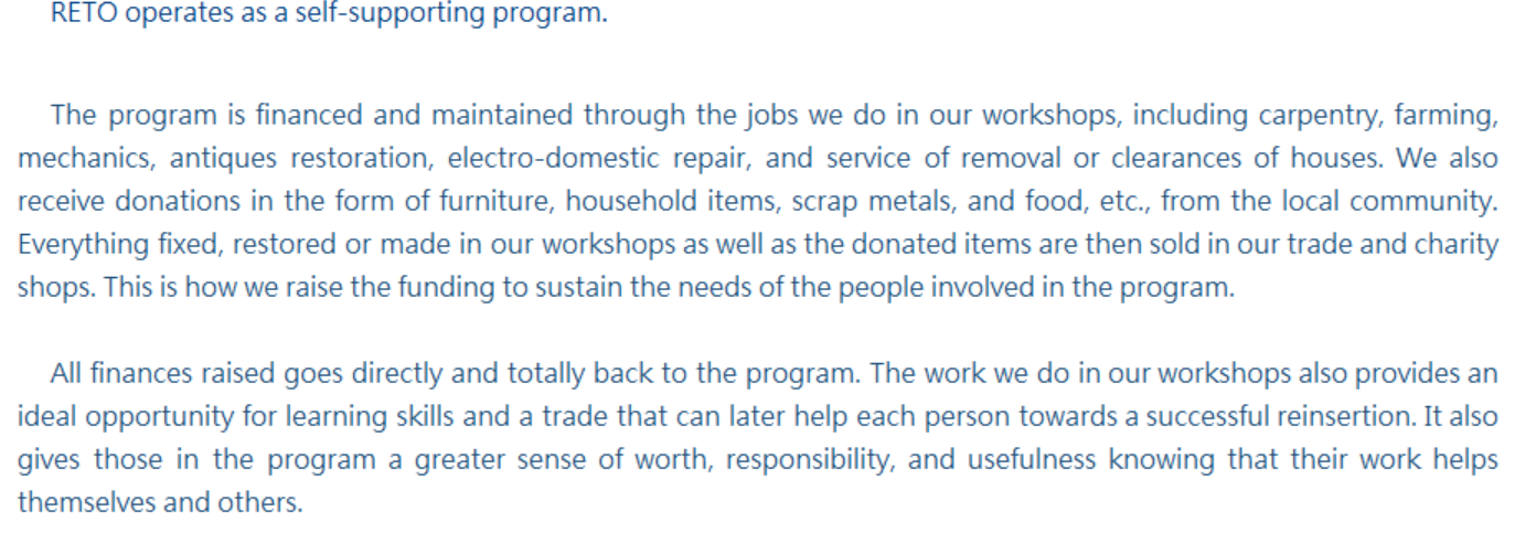 The program is financed and maintained through the jobs we do in our workshops, including carpentry, farming, mechanics, and clearances of houses.